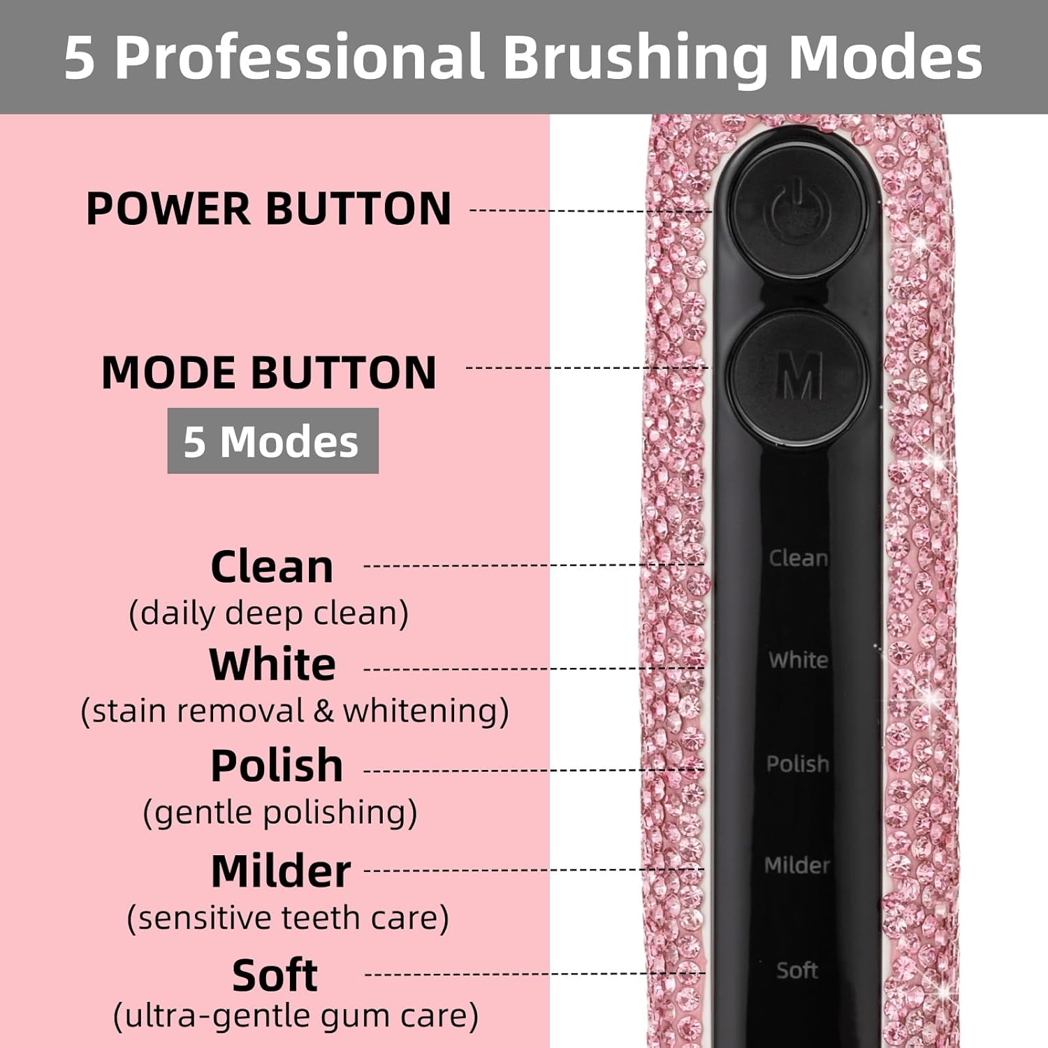 - 5 Modes for Perfect Results:Clean (daily deep clean), White (stain removal & whitening), Polish (gentle polishing), Milder (sensitive teeth care), and Soft (ultra-gentle gum care) . Achieve a dentist-clean feel tailored to your unique oral care needs