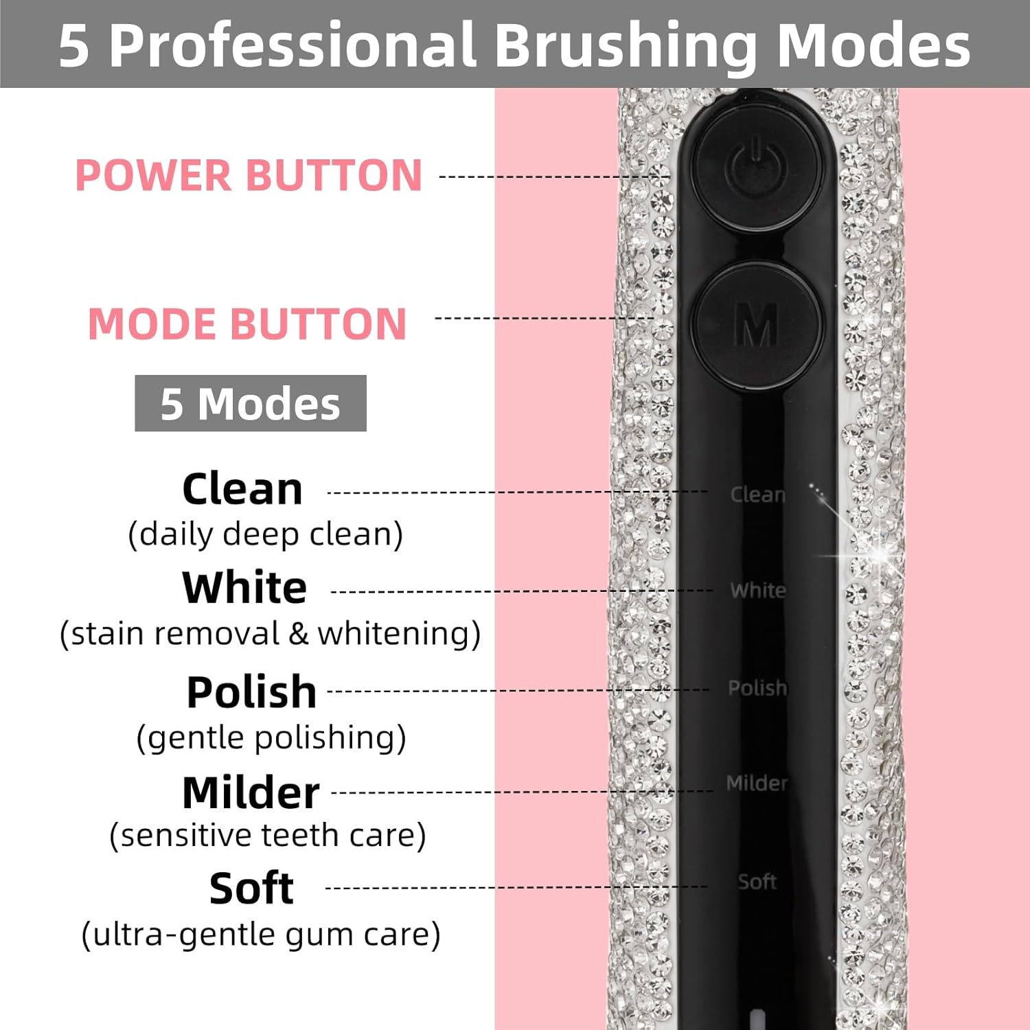 • 5 Modes for Perfect Results:Clean (daily deep clean), White (stain removal & whitening), Polish (gentle polishing), Milder (sensitive teeth care), and Soft (ultra-gentle gum care) . Achieve a dentist-clean feel tailored to your unique oral care needs